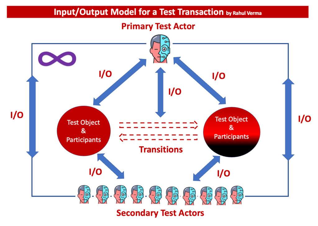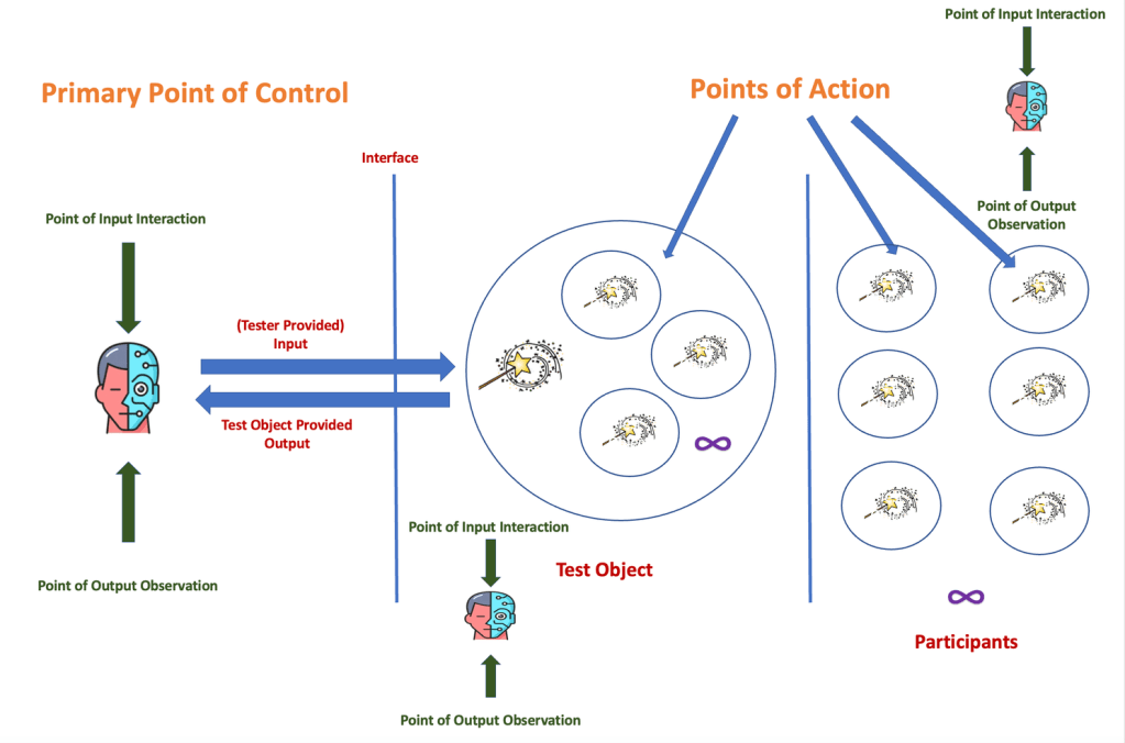 This simple model is able to explain how a tester should be thinking in terms of I/O at any point in time when actively engaged with a test object or participant.
