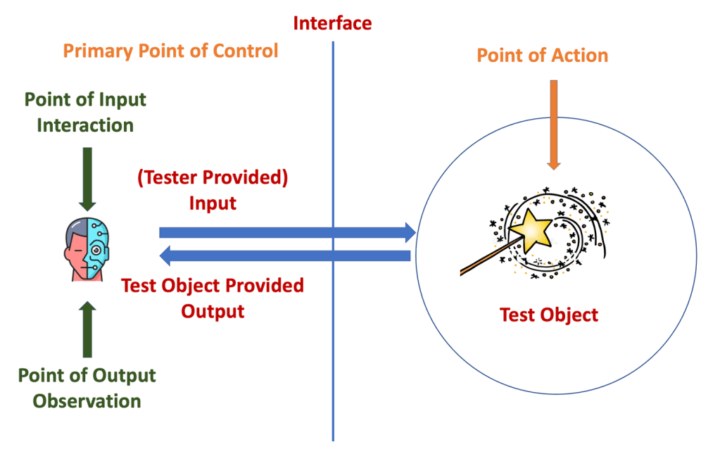 As a Tester, you need 2 fundamental points of control – to provide input and to observe output. Let’s map this and Point of Action from AEIOU model here: