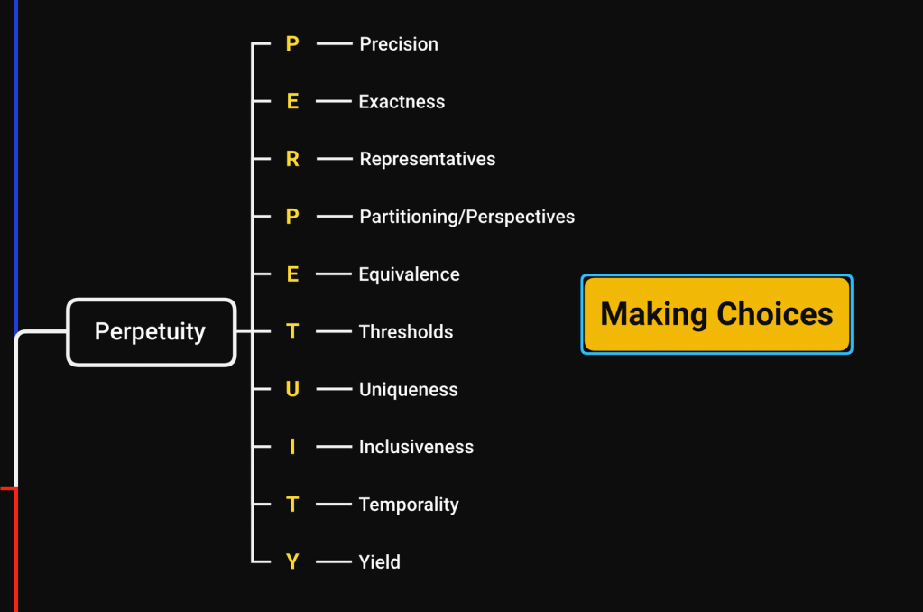 To capture all the factors/think-words in a simple way, I’ve created a mnemonic. You may not like it. It’s complex. If so, find another way.